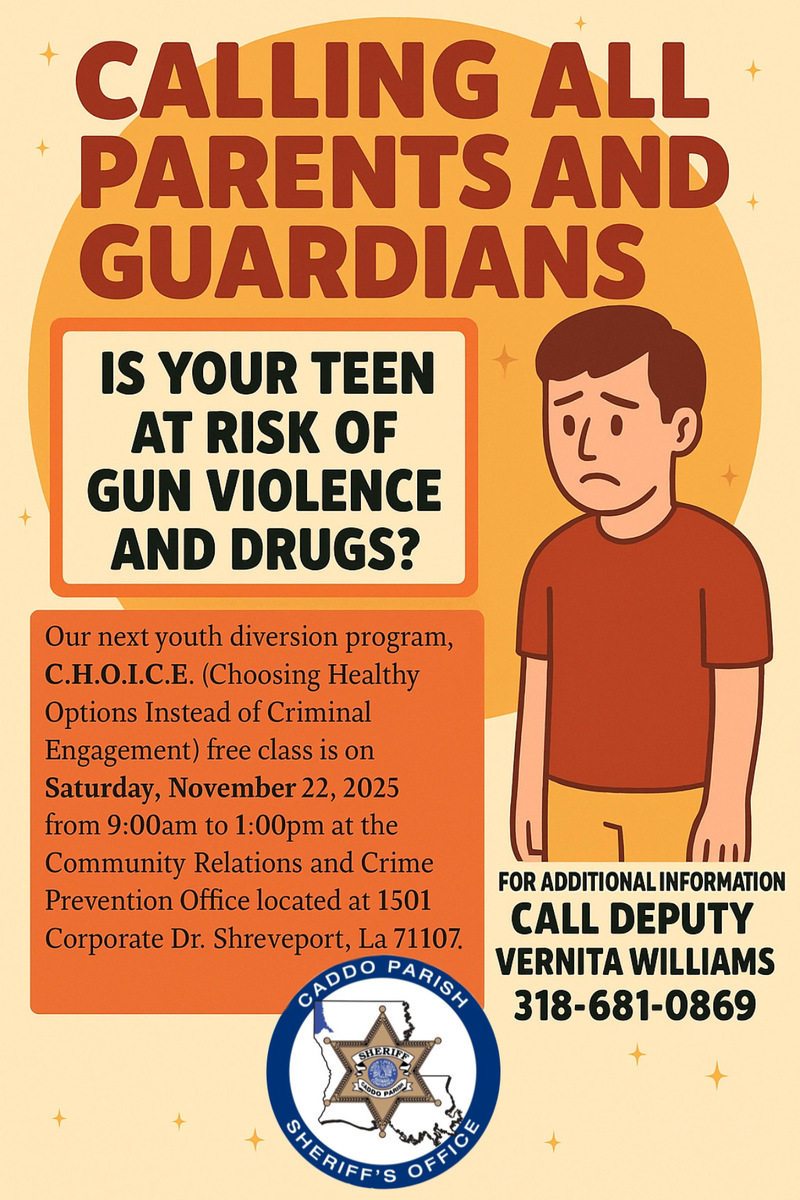 The class will take place on November 22, from 9 a.m. to 1 p.m. at our Community Relations and Crime Prevention Office, located at 1501 Corporate Drive, Shreveport, LA 71107. For more information, please contact Deputy Vernita Williams at 318-681-0869.