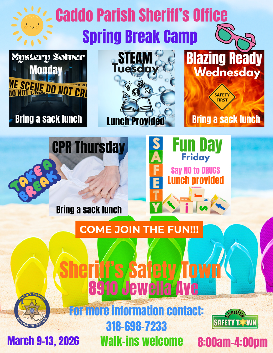 The Caddo Parish Sheriff's Office is excited to invite families to an action-packed week of learning and fun at Sheriff's Safety Town during Spring Break!