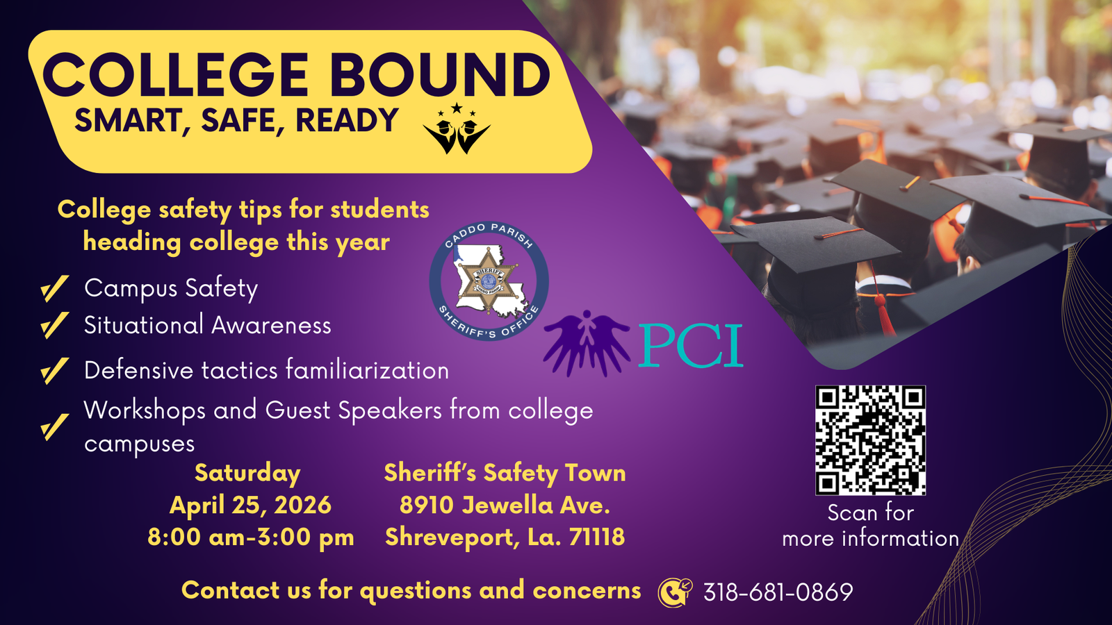 The Caddo Parish Sheriff's Office Community Relations Division is proud to announce an upcoming College Bound Safety Program, designed to help students prepare for a safe and successful transition into college life.
